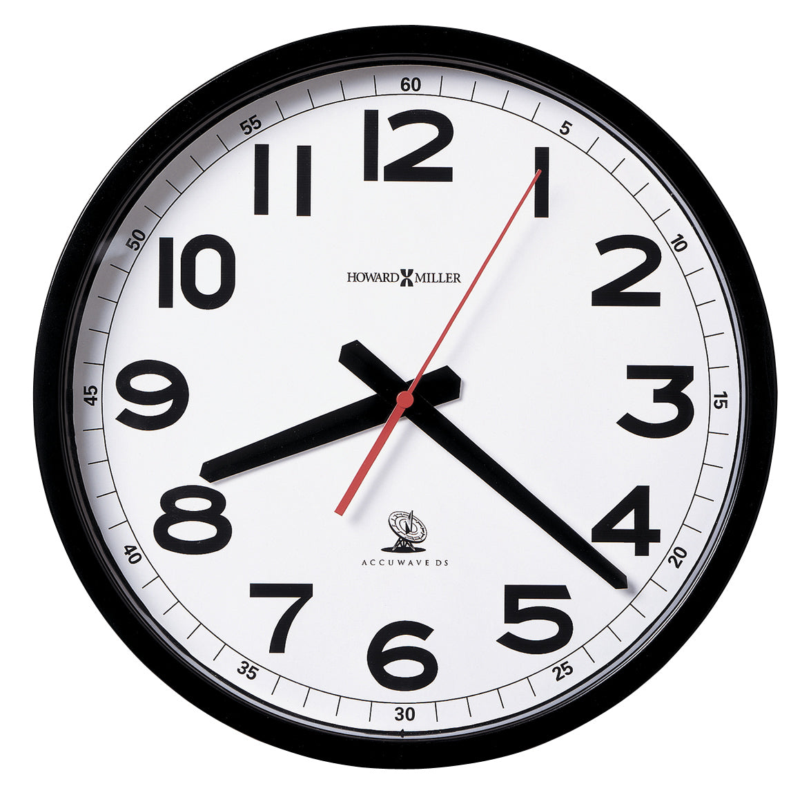 This Eagle Wall Clock by Howard Miller has a white dial with black Arabic numerals, black case, and glass crystal. Radio controlled movement, automatically adjusts for Daylight Savings Time. Requires one AA sized battery (not included).